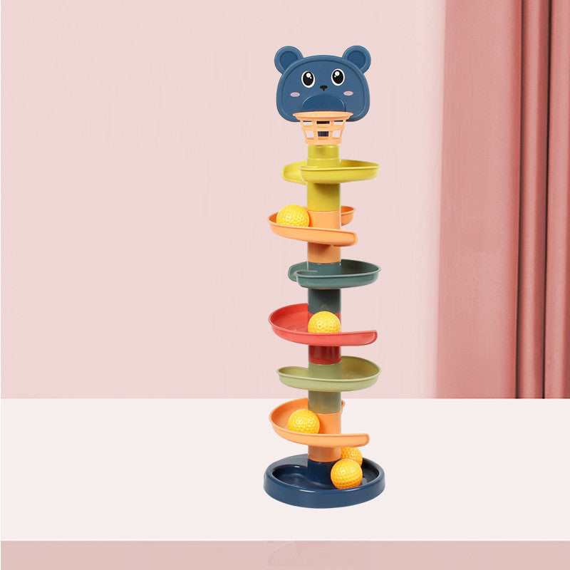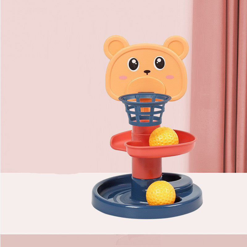 The Baby Toys Rolling Ball Pile Tower is a great early education toy for babies. It is colorfully designed to help cultivate the baby's cognition ability of color. The toy also helps exercise children's concentration. It is easy to play, and smooth to play. Put the ball into the basketball hoop. The ball will slide down the track from the top to the next layer, and finally reach the bottom.